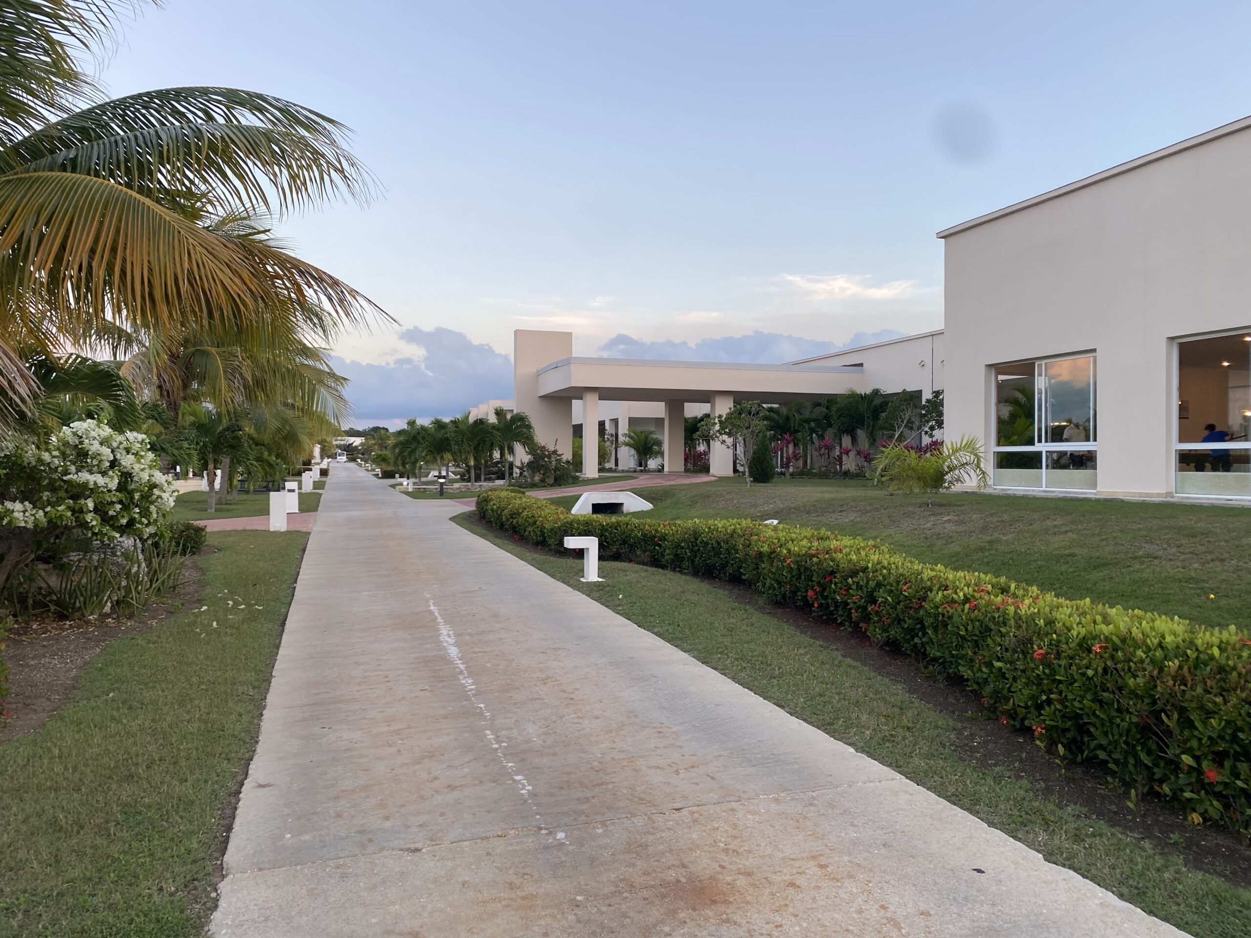 Les bâtiments du Iberostar Selection Holguín, d’un blanc uniforme, donnent au site un style sobre mais élégant. L’ensemble est étendu, et des navettes — de type voiturettes de golf — permettent de se déplacer… du moins lorsqu’elles passent, car le service est assez aléatoire. À notre arrivée tardive (vers 22h30), le buffet était déjà fermé, et nous avons dû nous rabattre sur un snack-bar à l’offre plutôt limitée : burgers ou grilled-cheese.
