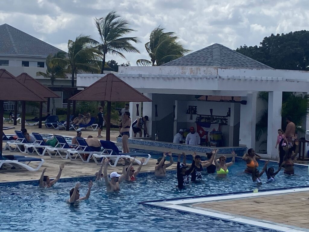 La piscine principale, de son côté, offrait un moment de répit agréable. Même en pleine semaine de relâche, on n’a jamais eu à se lever à l’aube pour trouver une chaise longue. L’ambiance y était bonne, avec de la musique d’ambiance constante et une atmosphère détendue. Le tableau des activités laissait entrevoir une belle variété : yoga, aquagym, volley-ball de plage, volley-ball aquatique… mais dans les faits, nous n’avons vu que quelques séances d’aquagym — animées, il faut le dire, par un animateur visiblement en apprentissage. Les autres activités semblaient absentes ou annulées sans préavis.