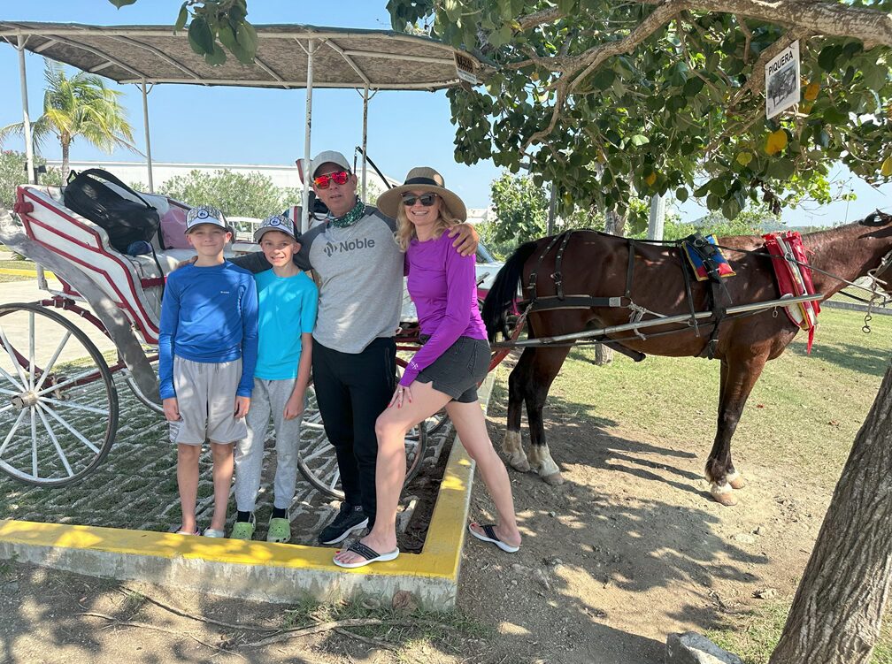 Un des moments les plus marquants de notre séjour s’est déroulé en dehors du site de l’hôtel. Sur la recommandation d’autres vacanciers rencontrés sur place, nous avons réservé une balade en calèche avec Ismel, un guide local. La calèche, toute simple — quatre places tirées par un cheval — nous a menés à travers les environs immédiats de l’hôtel, dans une immersion douce mais saisissante dans la vie cubaine.